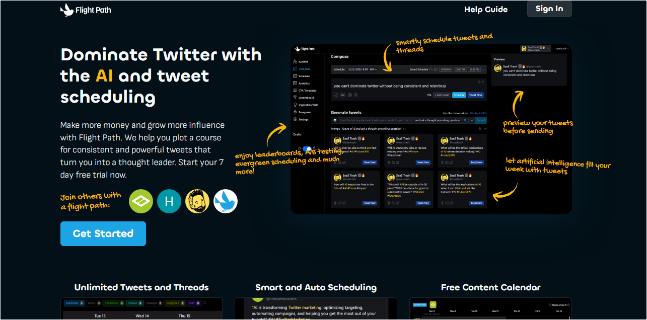 Dominate Twitter with the AI and tweet scheduling. Make more money and grow more influence with Flight Path. We help you plot a course for consistent.