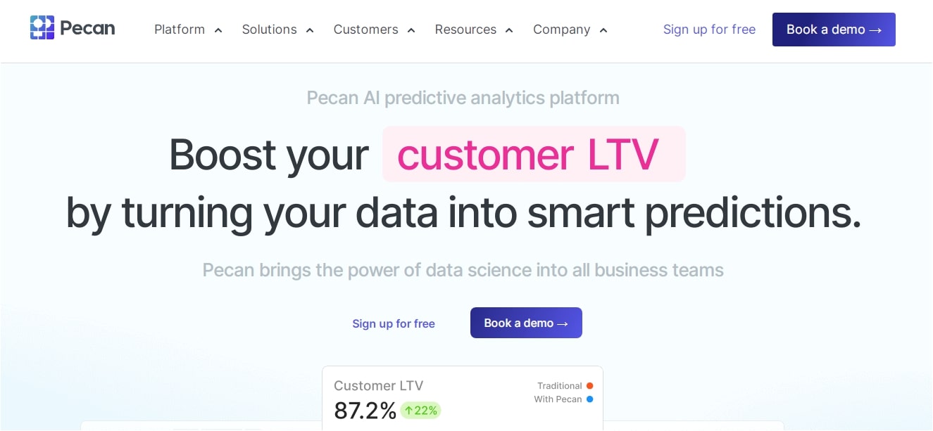 Predictive analytics software from Pecan is designed for impact. Get accurate, actionable predictions in days and unlock the power of AutoML.