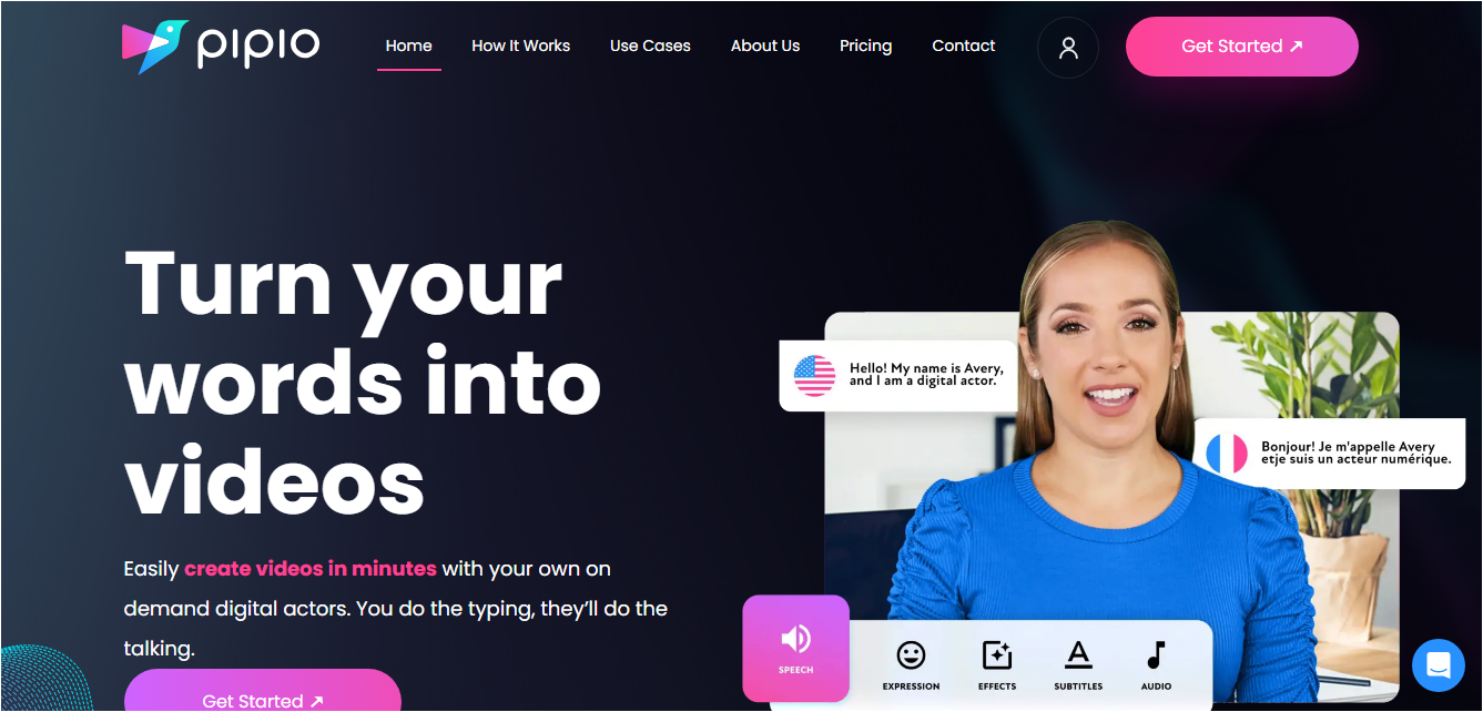 Pipio enables you to create customized video content utilizing lifelike AI avatars.