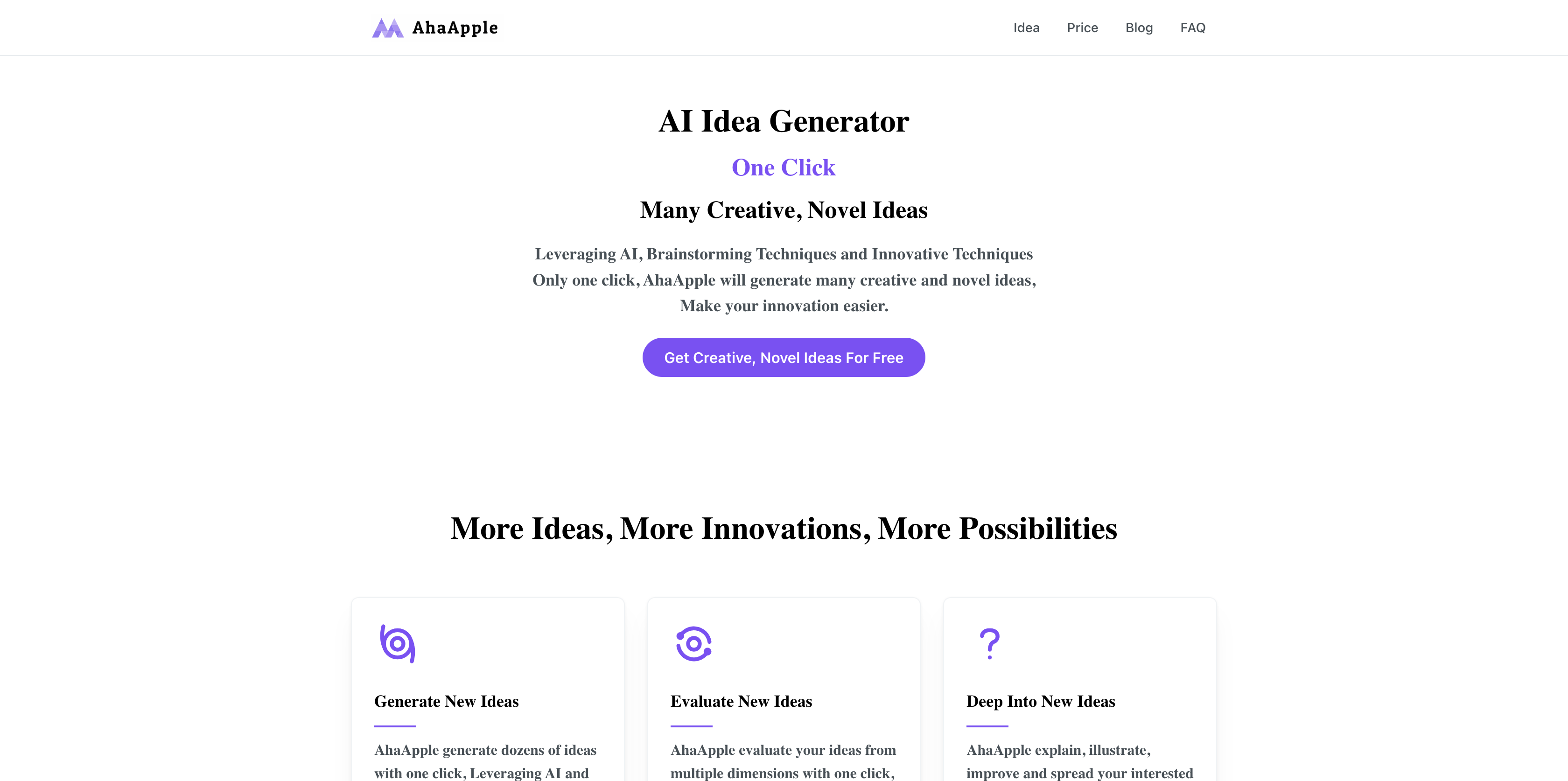 “AhaApple creates a seamless platform that empowers users to unleash their creativity. AhaApple serves as an AI tool for generating ideas.
