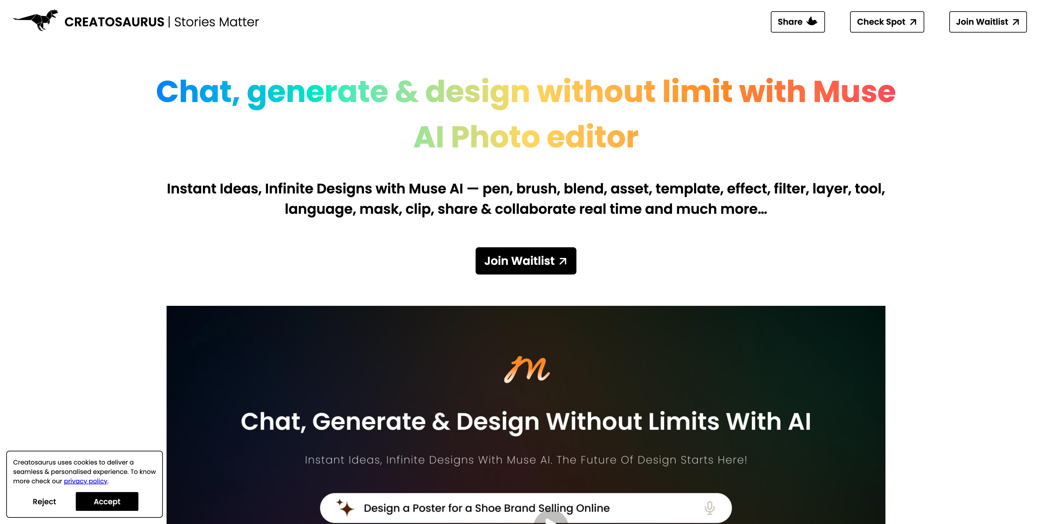 Muse AI serves as a proficient design editing tool for conversing, producing, and creating designs through the usage of generative AI.