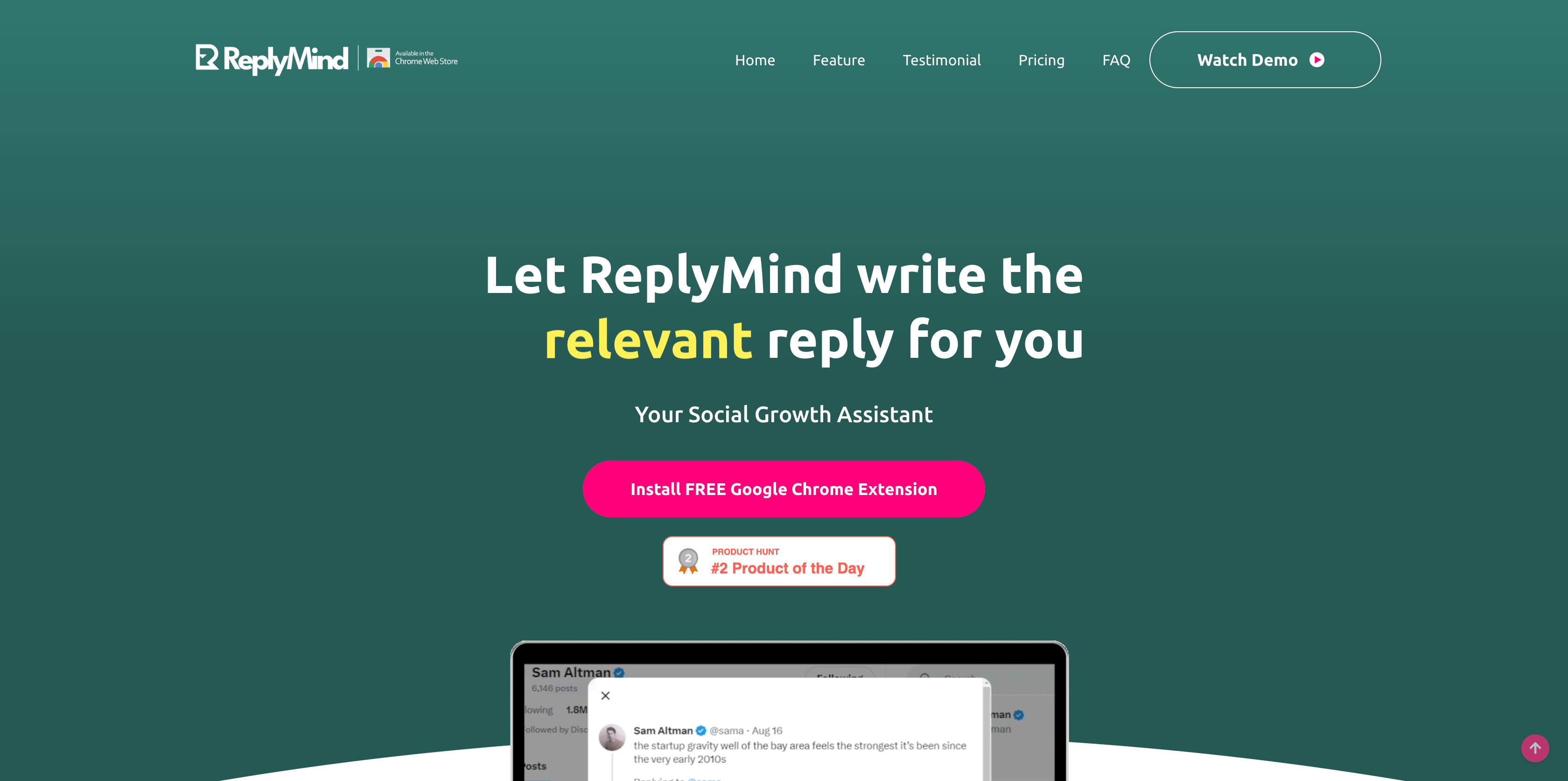 ReplyMind is an advanced AI tool that assists busy professionals in expanding their online influence through natural means.