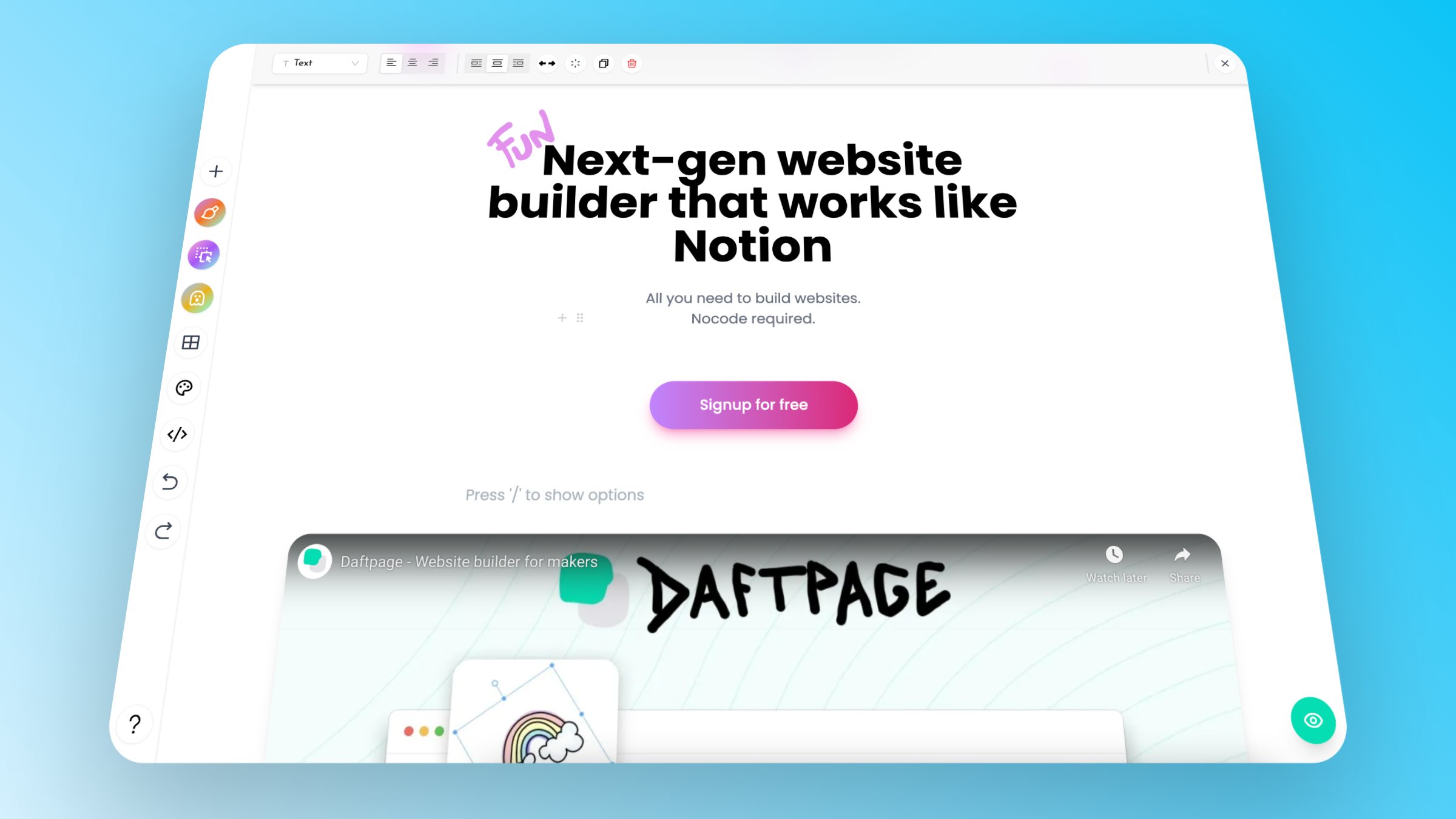 Next-gen website builder for makers, Build a website with Notion in Daftpage.