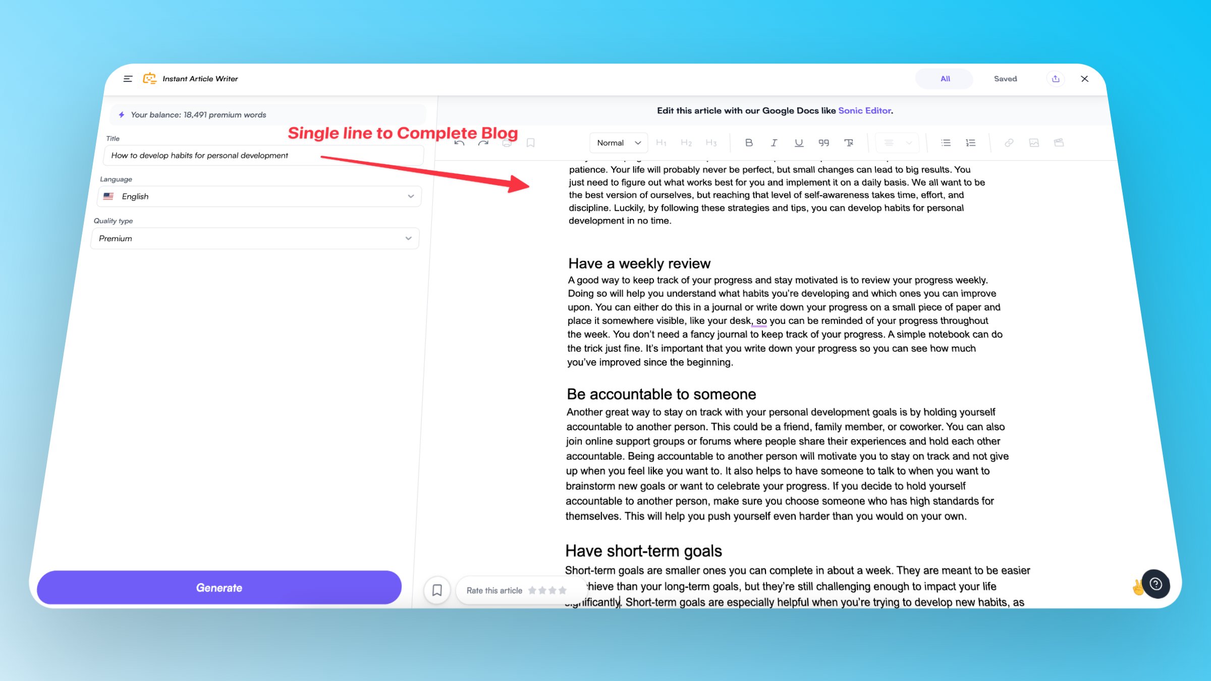 Instantly generate a 1500-word article with one click with the power of AI.