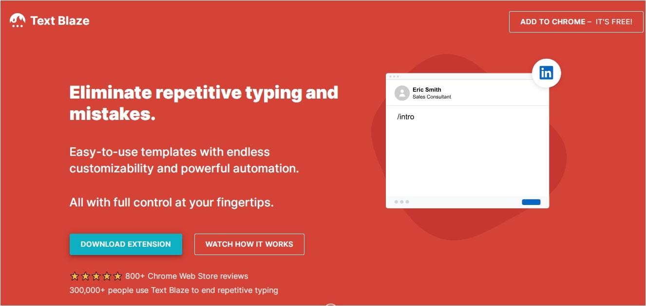 Text Blaze is an auto text Chrome Extension to insert snippets, templates and macros in Google Chrome. Speed up your work and type faster with this text.
