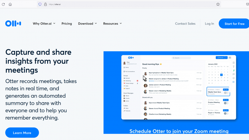 - Meetings are recorded, notes are taken in real-time, and an automated outline is produced so that everyone can share and remember everything.